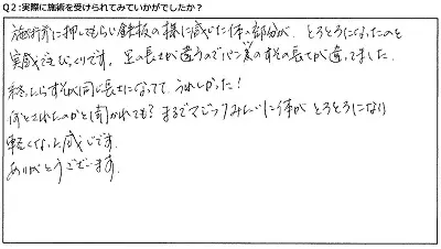 痛みはあまりなく、施術前後での違いがよく分かった。